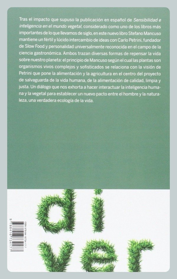 Tras el impacto que supuso la publicación en español de Sensibilidad e inteligencia en el mundo vegetal, considerado como uno de los libros más importantes de lo que llevamos de siglo, en este nuevo libro Stefano Mancuso mantiene un fértil y lúcido intercambio de ideas con Carlo Petrini, fundador de Slow Food y personalidad universalmente reconocida en el campo de la ciencia astronómica. Ambos trazan diversas formas de repensar la vida sobre nuestro planeta: el principio de Mancuso según el cual las plantas son organismos vivos complejos y sofisticados se relaciona con la visión de Petrini que pone la alimentación y la agricultura en el centro del proyecto de salvaguarda de la vida humana, de la alimentación de calidad, limpia y justa. Un diálogo que nos exhorta a hacer interactuar la inteligencia humana y la vegetal para establecer un nuevo pacto entre el hombre y la naturaleza, una verdadera ecología de la vida.