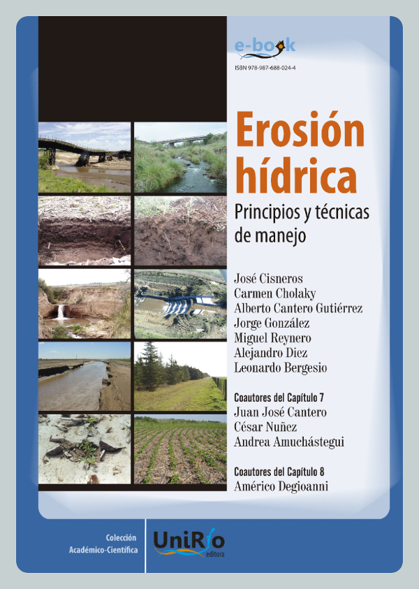 La erosión es un problema que afecta a la región central del país, con preeminencia en la zona de influencia de la Universidad Nacional de Río Cuarto, y pone en riesgo la sustentabilidad de todo el sistema productivo. Erosión Hídrica. Principios y técnicas de manejo comprende una actualización de los conocimientos sobre la física de la erosión hídrica, y los fundamentos hidrológicos para caracterizar el comportamiento de las cuencas sujetas a este proceso. Se exponen los principales modelos que permiten caracterizar y cuantificar las tasas de erosión y de escurrimiento, como base para la planificación de medidas de ordenamiento y de control.