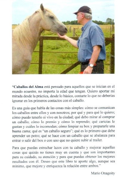 Imprescindible para quienes se inician en el mundo ecuestre. Una guía práctica para todo tipo de público, con fotografías a todo color. Cómo se comunican los caballos entre ellos y con nosotros, por qué y para qué lo quiero, cómo puedo tenerlo si vivo en la ciudad, qué debo mirar al comprar un caballo, cómo lo premio y cómo lo reprendo, qué caricias le gustan y cuáles le incomodan, cómo limpiar su box y prepararle una buena cama, qué es un "caballo seguro", qué es lo primero que debe aprender un potro, qué se hace con un caballo que se abalanza para entrar o salir del box, o con uno que no quiere subir al trailer, y mucho más. Para que puedas mejorar su cuidado y atención, y así estrechar lazos y enriquecer tu relación con el caballo.