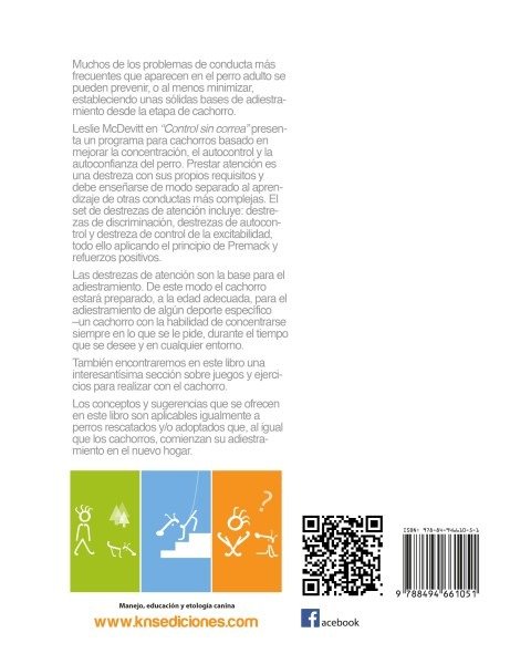 Leslie McDevitt en Control sin correa presenta un programa para cachorros basado en mejorar la concentración, el autocontrol y la autoconfianza del perro. Prestar atención es una destreza con sus propios requisitos y debe enseñarse de modo separado al aprendizaje de otras conductas más complejas. El set de destrezas de atención incluye: destrezas de discriminación, destrezas de autocontrol y destreza de control de la excitabilidad, todo ello aplicando el principio de Premack y refuerzos positivos.