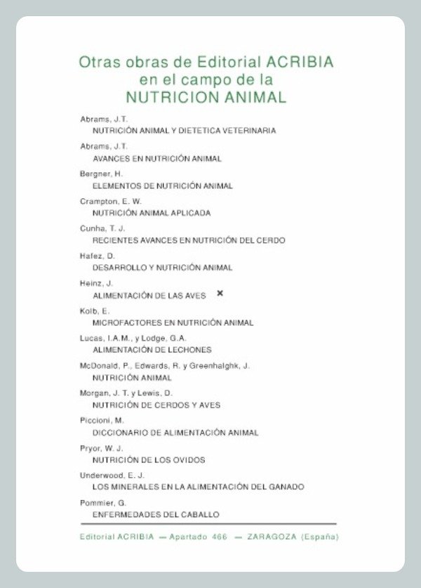 Resumen de las necesidades y composición de los alimentos