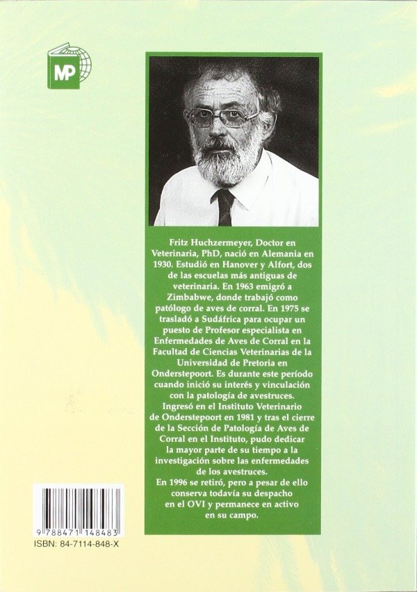 Debido al confinamiento geográfico y a los constantes cambios en la suerte de esta industria, nunca se ha publicado un manual de enfermedades, parásitos y otros factores que afectan a la salud de los avestruces. La información disponible estaba ampliamente diseminada y era difícil de obtener. El autor de este libro ha pasado muchos años estudiando patología de aves de corral en el Instituto Veterinario de Onderstepoort y se ha especializado en enfermedades de avestruces en los últimos años. Por ello está capacitado para la tarea de compilar la información existente y suplementaria con el fruto de su propia investigación. Se espera que esta monografía sea de utilidad para veterinarios y ganaderos que traten con los problemas sanitarios de estas aves únicas.