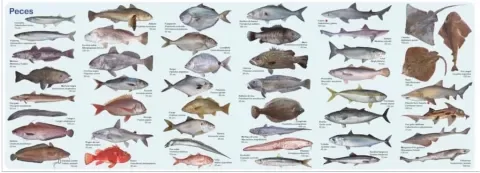 Guía educativa que describe peces, moluscos y crustáceos que se pueden comer del mar Argentino.